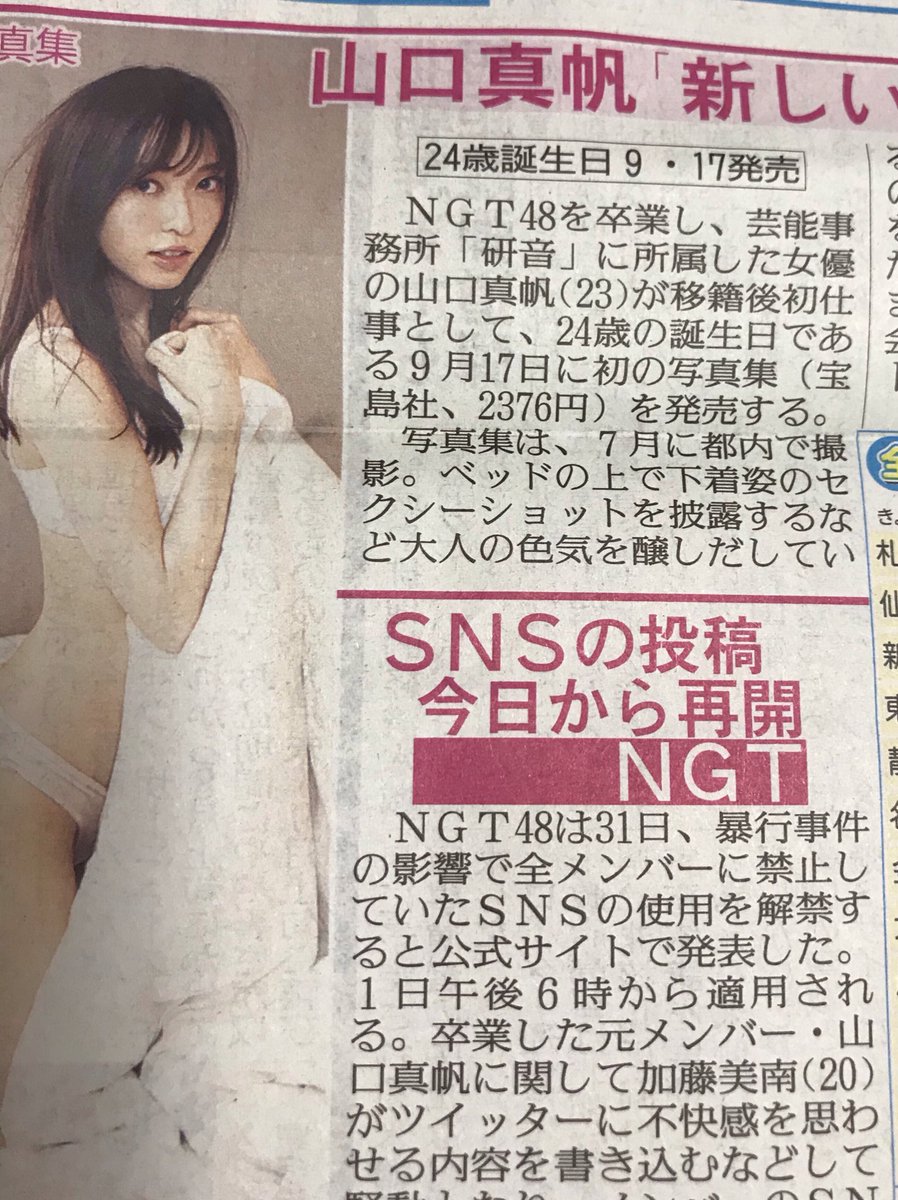 【朗報】山口真帆、研音初仕事は写真集!24歳誕生日の9/17に発売