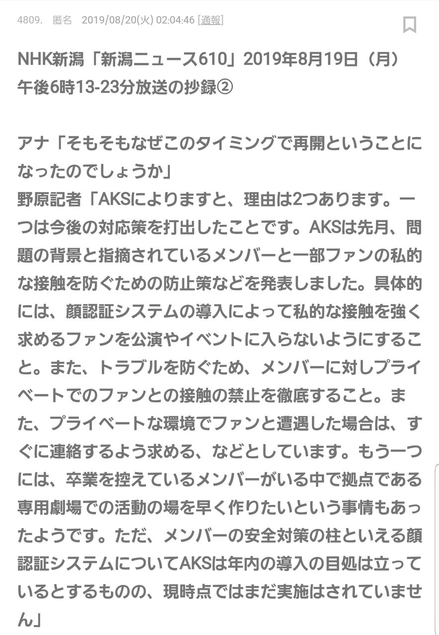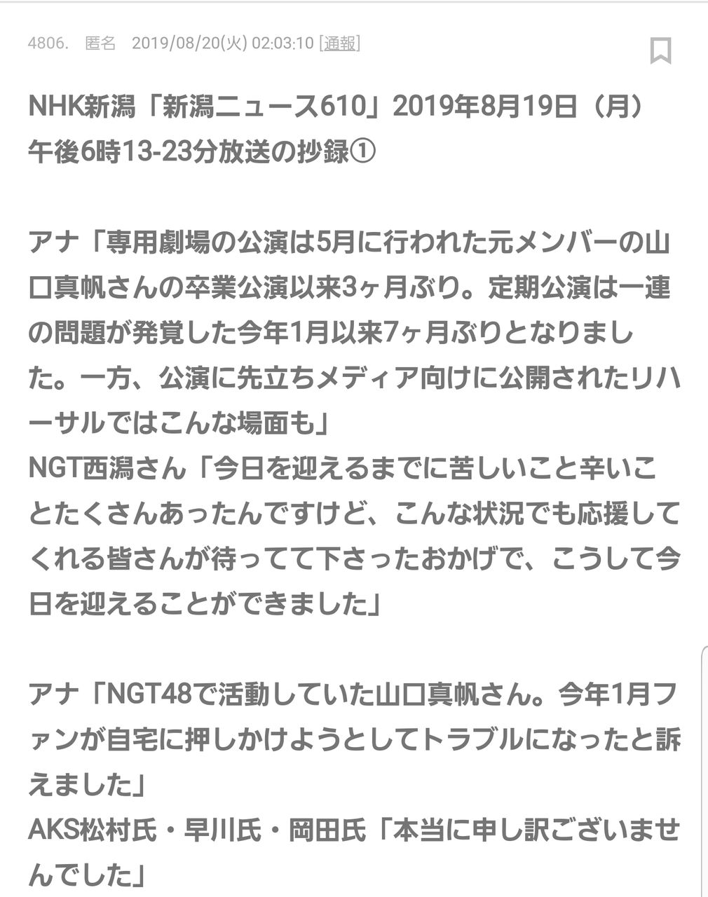 【NGT暴行事件】NHK新潟ニュース書き起こし