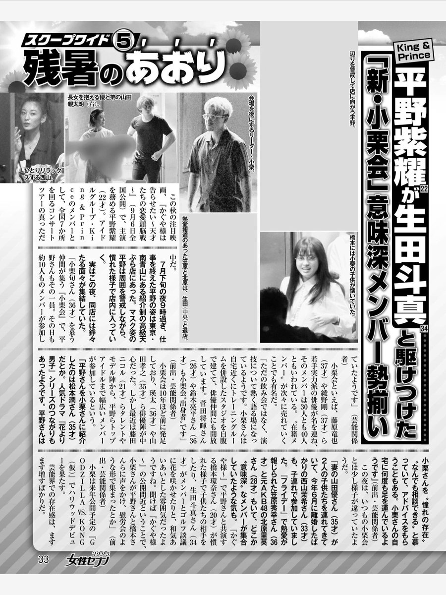 北原が『小栗会』に参加してる写真を女性セブンに撮られてしまう!この日の参加者小栗旬生田斗真橋本環奈平野紫耀山田優西山茉希
