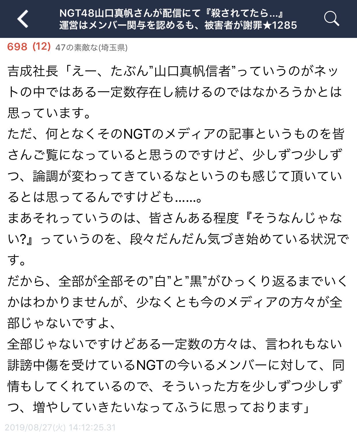 投稿日 2019年9月26日 10:03:15 (地下帝国 - NGT48)