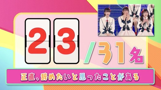 「NGT48を正直辞めたいと思ったことがある?」にYESと答えたNGT48メンバー 、23/31名