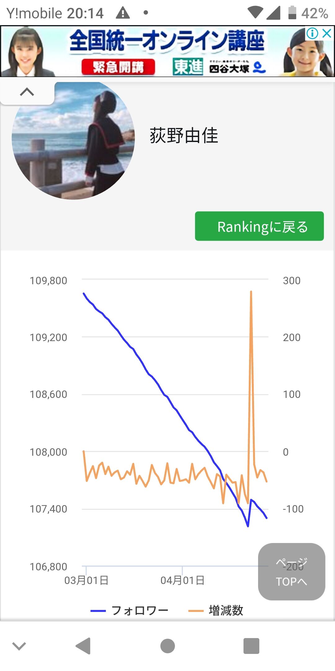 【NGT48】荻野由佳のフォロワー数の推移がヤバいwwwwwwwwwww