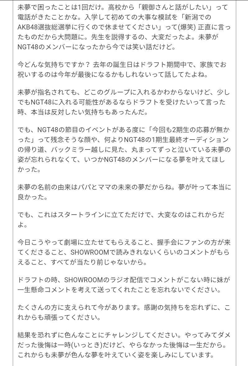 NGT新センター藤崎未夢の生誕の手紙が泣ける・・・