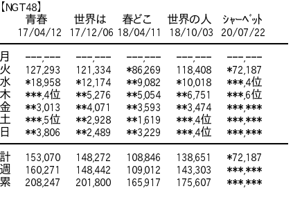 【NGT48】新曲「シャーベットピンク」3日目デイリー6位・・・
